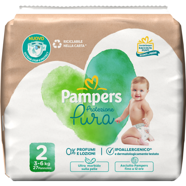 Pampers Protezione Pura - Naturello è un pannolino pensato per garantire al tuo bimbo una protezione completa poiché, oltre all'assorbenza tipica dei Pampers, aggiunge ingredienti naturali e rispettosi dell'ambiente.